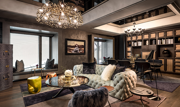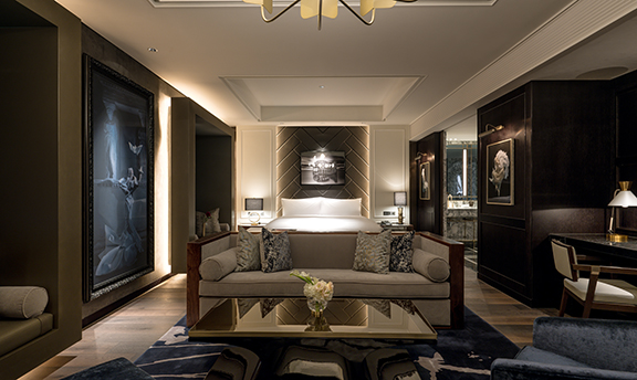 '자유와 즐거움 그리고 예술적 영감을 선사하는 라이프스타일'이라는 키프레임에 맞춰 입구에서부터 객실까지 전반적으로 어두운 분위기 속 노란 조명을 사용해 고급스러운 느낌을 모든 공간에서 느낄 수 있다.